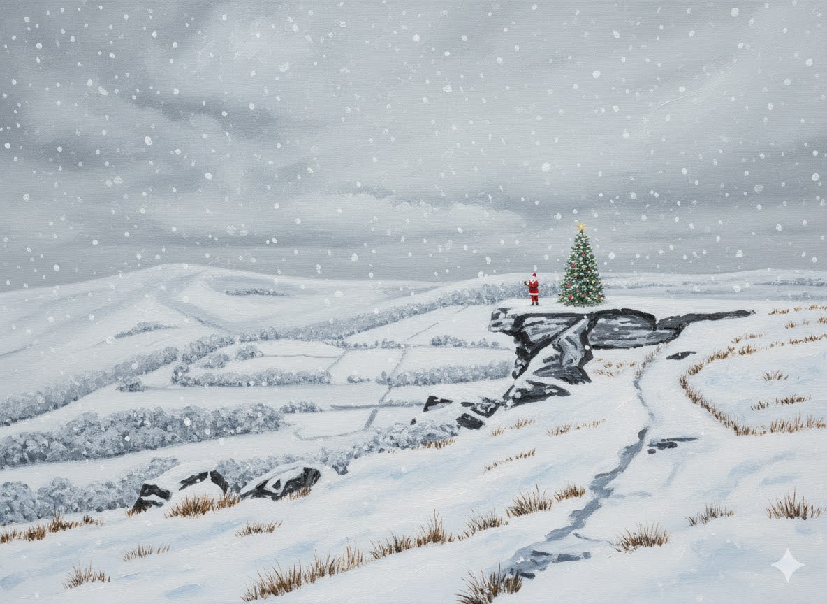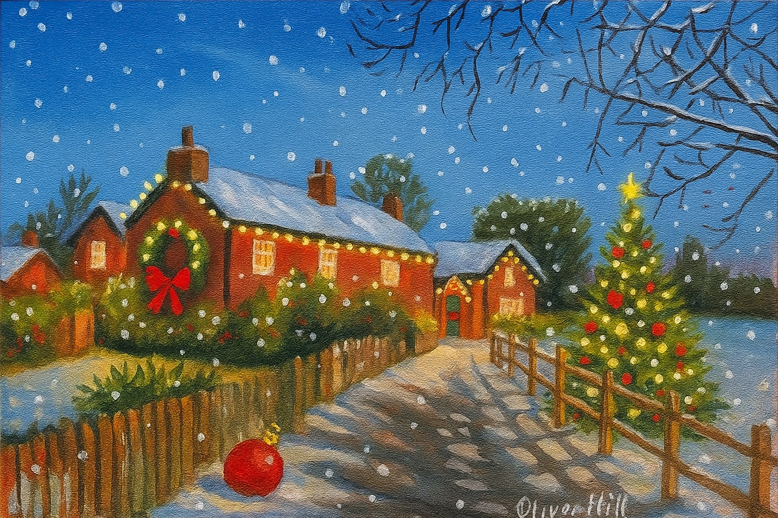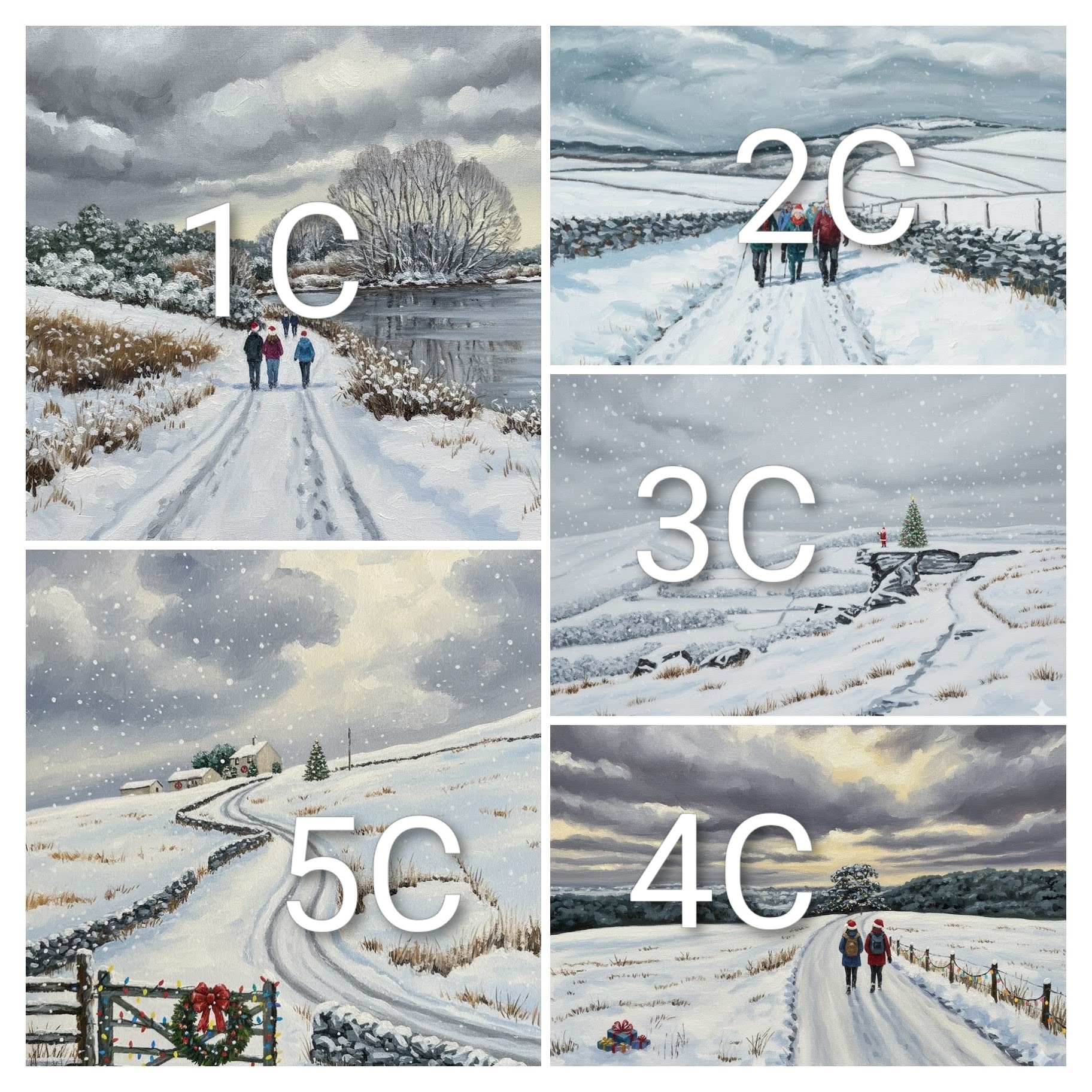 Christmas Cards Christmas cards measuring 5″ x 7″ are available at £2.50 per card, or in sets of five for £10.00. The cards were created from original paintings using AI.