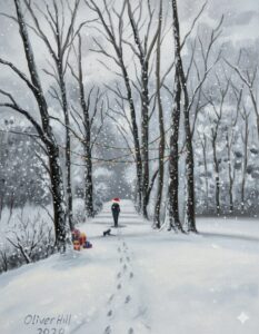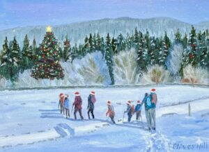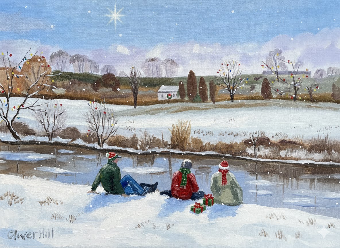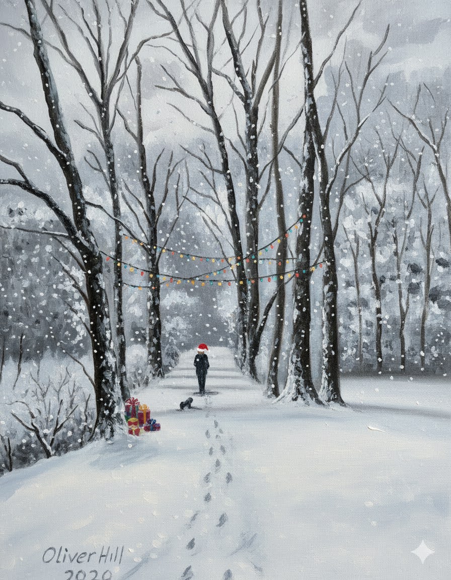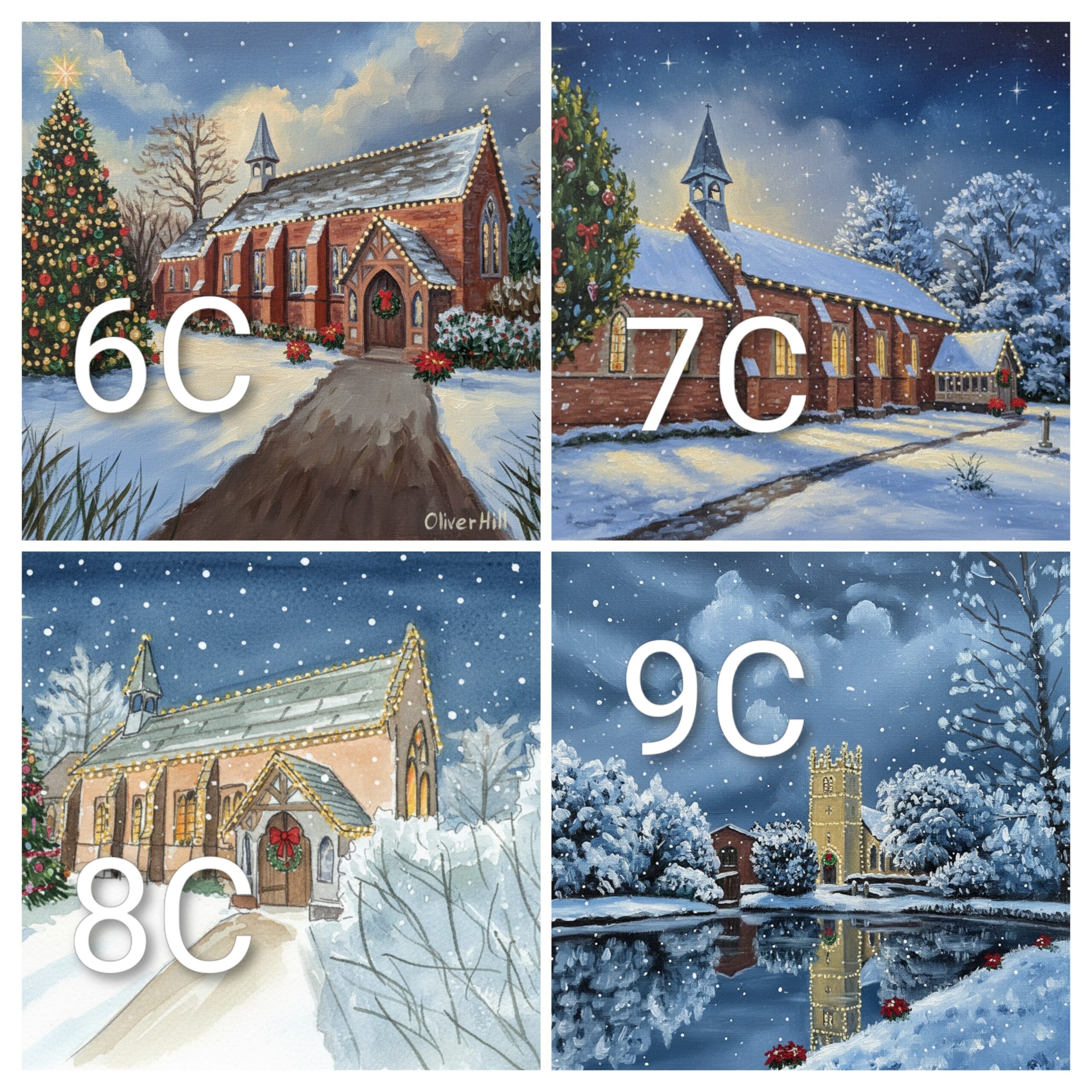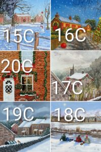 Christmas Cards Christmas cards measuring 5″ x 7″ are available at £2.50 per card, or in sets of five for £10.00. The cards were created from original paintings using AI.