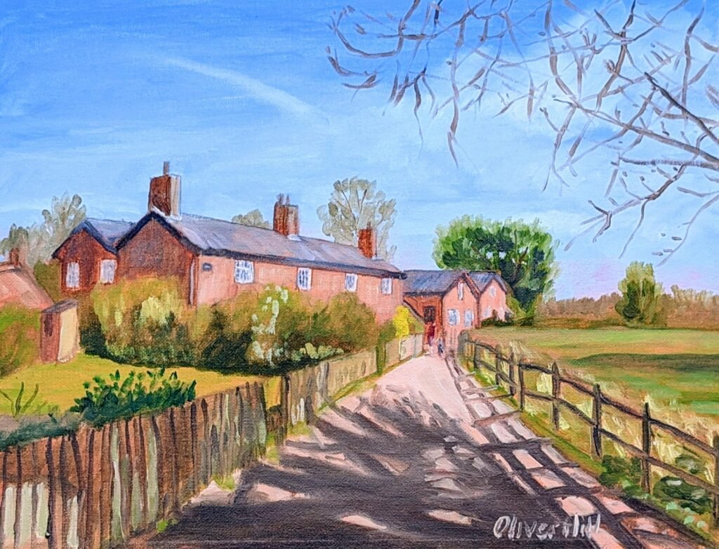 Private Collection. Styal Cottages. Wilmslow. 16 x 12″ on board.